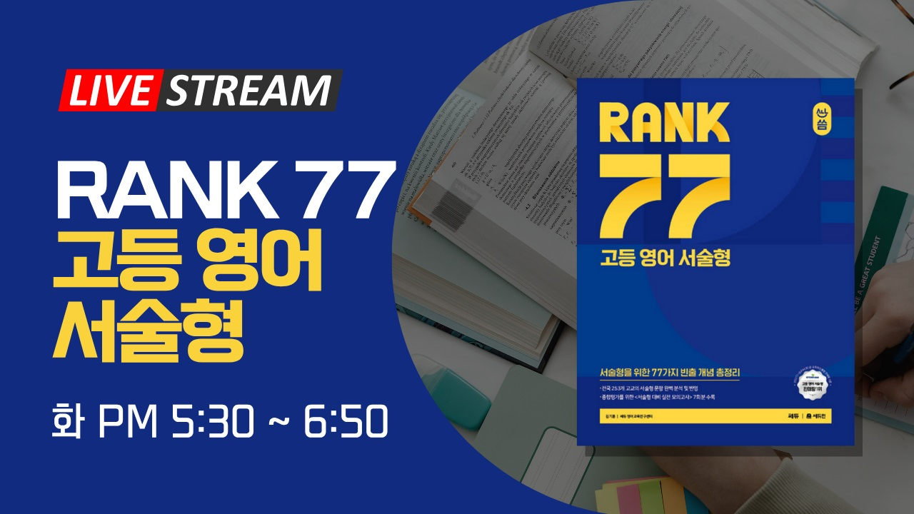 - 최대 인원 : 10명 - 고등 서술형을 준비하기 딱 좋은 강의 -16주 강의, 매주 화 5:300 - 6:50 -개강일 25년 7월 15일 - 수업료: 4주 16만원