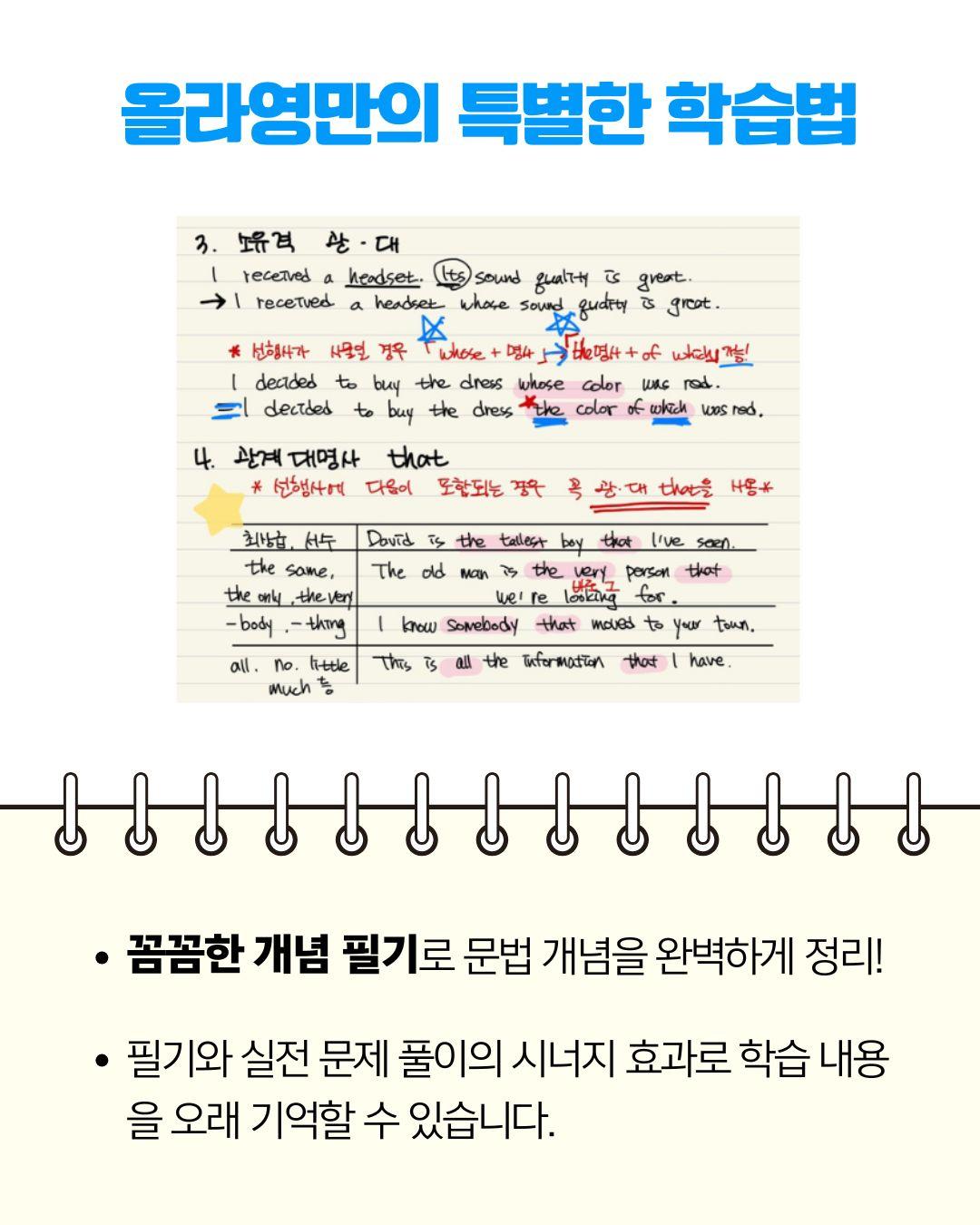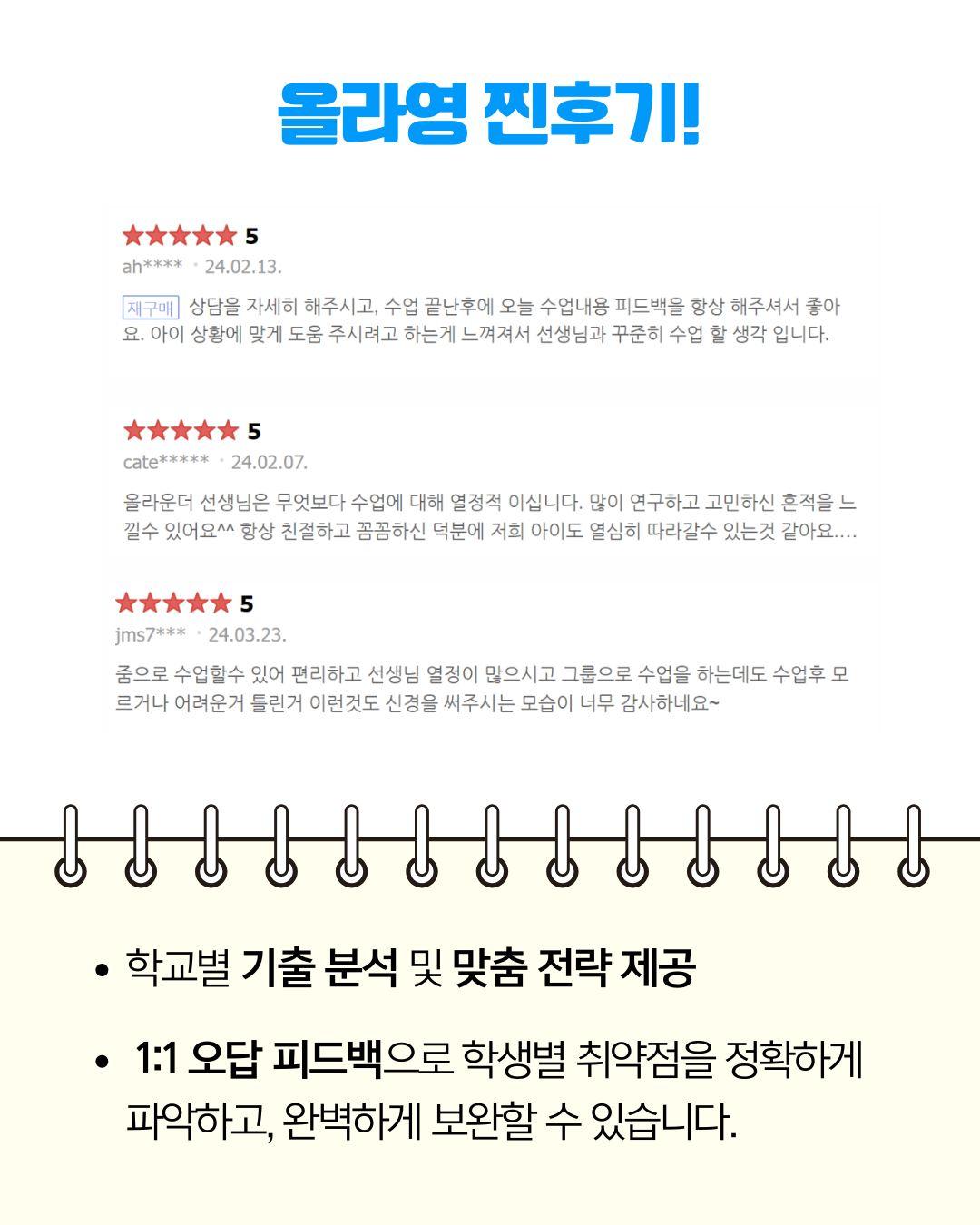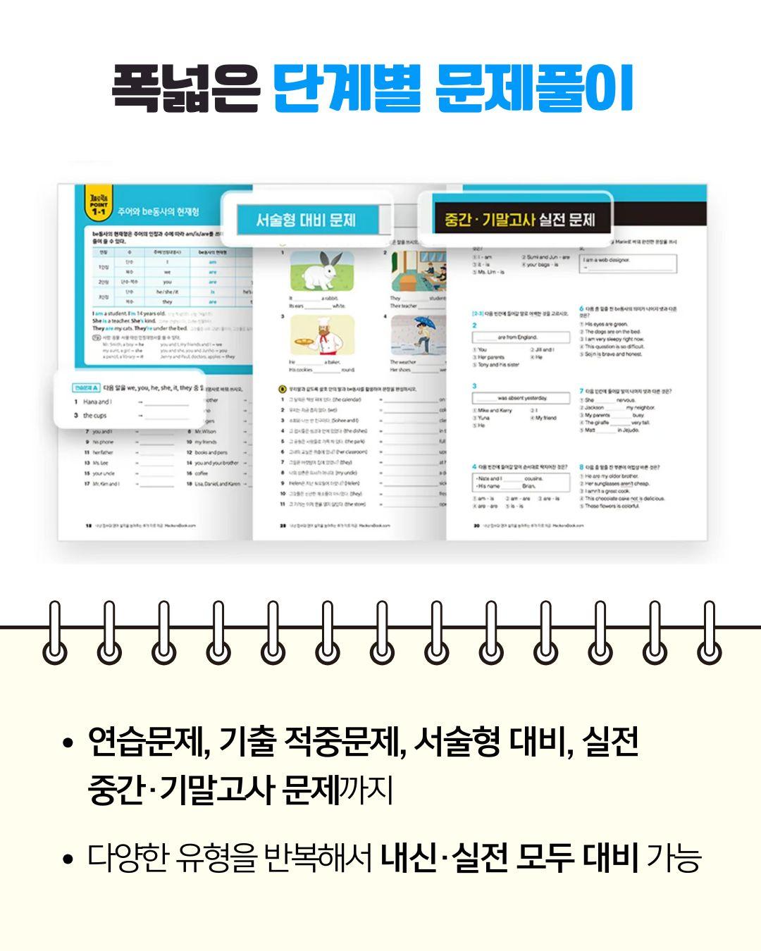 해커스 중학영문법 중1 강의 소개 중학교 1학년을 위한 해커스 중학영문법 Level 1 수업입니다. 내신 핵심 문법 개념을 체계적으로 익히고, 실전 문제로 바로 적용하는 수업이에요. 교재: 해커스 중학영문법 Level 1 목표: 중1 필수 문법 완벽 정리 + 내신 대비 실전 훈련 특징: 개념→예문→실전문제 3단계 학습, 단원별 핵심 포인트와 오답 분석 운영: 주 1회 / 월 4회 수업 수강료: 월 15만 원 방식: 실시간 수업 + 월 1회 개별 피드백 제공
